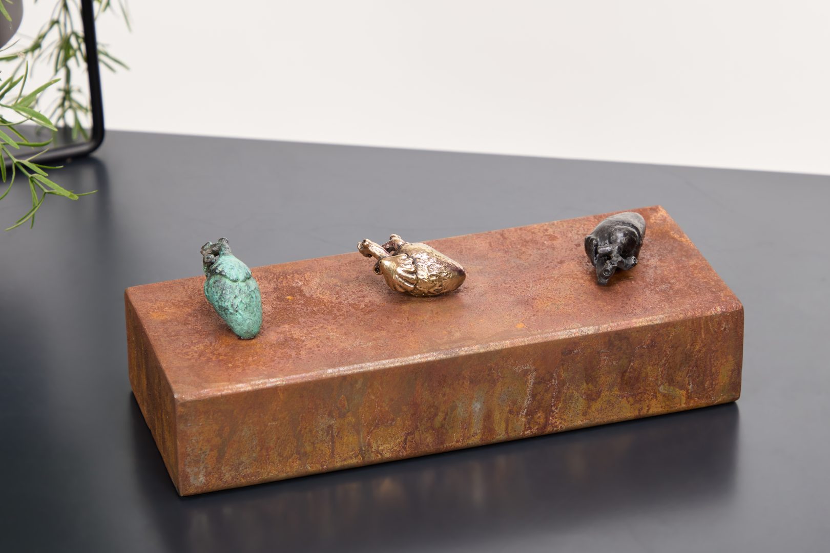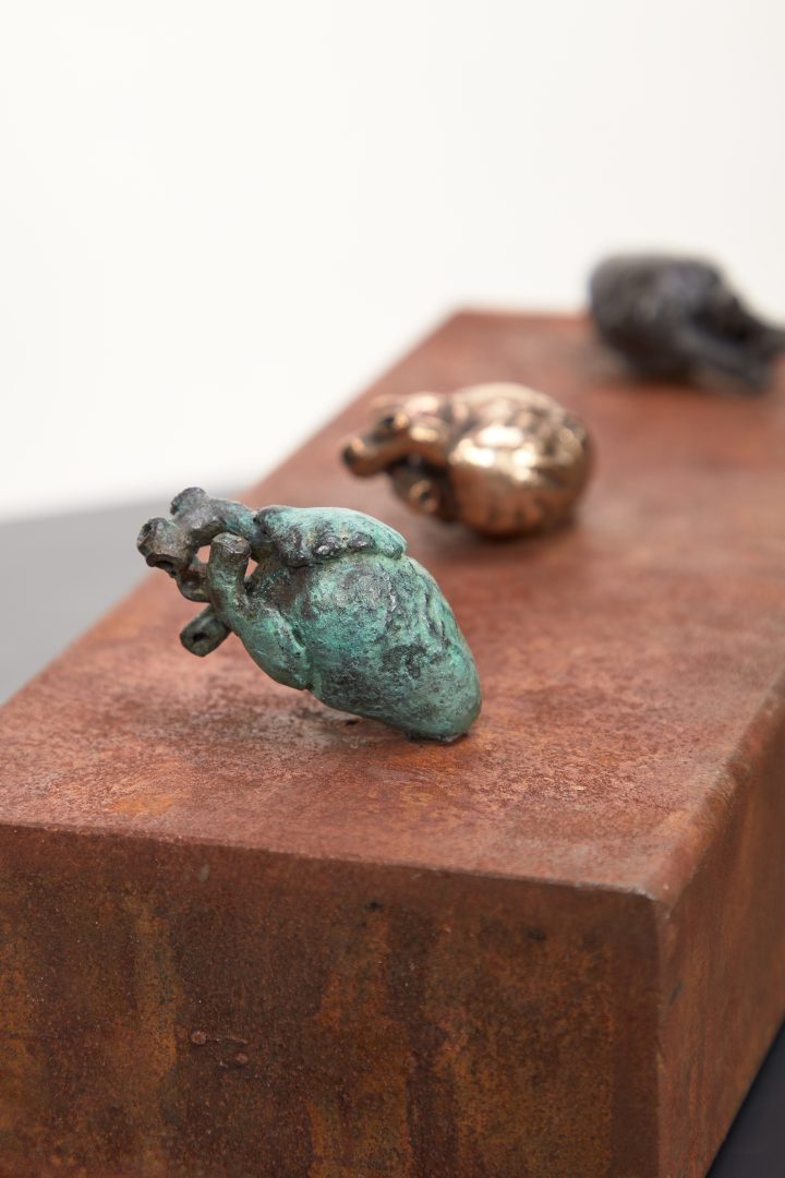 • Corazones en bronce a la cera perdida, cada uno con una pátina distinta.